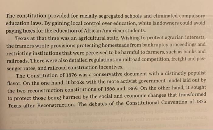 Does Texas Constitution Of 1876 Is In Agreement With Chegg Com